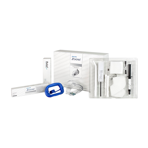 Zoom Chairside Whitening Kit - 6% Perossido di idrogeno + trattamento domiciliare DayWhite 6% perossido d'idrogeno. codice ZMZME2692 Philips Zoom La prima soluzione Zoom luce attivata professionale con concentrazione al 6%, sbianca fino a 6 tonalità in un’ora, ridotta sensibilità. Test clinici hanno dimostrato che già dopo il primo trattamento, grazie a Philips Zoom, i denti possono essere schiariti fino a 6 tonalità. Il 50 % dei pazienti, dopo il trattamento, ha riportato una tonalità pari a VITA B1 o addirittura più chiara. Rispetto ad un trattamento di sbiancamento senza lampada UV, anche dopo 30 giorni i denti risultano il 42% più bianchi.* Il gel Philips Zoom agisce grazie alla reazione foto-Fenton di perossido e ferro. La componente perossidica reagisce con il ferro generando radicali idrossilici, i cosiddetti “agenti sbiancanti”. La fotosintesi favorisce il rinnovo continuo del ferro reattivo, la produzione costante di radicali idrossilici, migliorando notevolmente il processo di sbiancamento. <b>Kit (per 2 pazienti) composto da:</b> » n.4 Siringhe di gel Zoom da 2.4 g cad. » n.2 Retrattori labiali IsoPrep® » n.2 Guide Light » n.2 Tray monopaziente ciascuno contenente: • n.1 Siringa Liquidam da 2.9 g • n.2 Whitening Accelerator PH Booster • n.2 Fogli di vinile • n.1 Portamascherine • n.2 Siringhe Take Home Gel da 2.4 g DayWhite 6% • Cannula di aspirazione chirurgica • Olio di vitamina E • Rulli di cotone, garze e materiale isolante • Pennellini vari