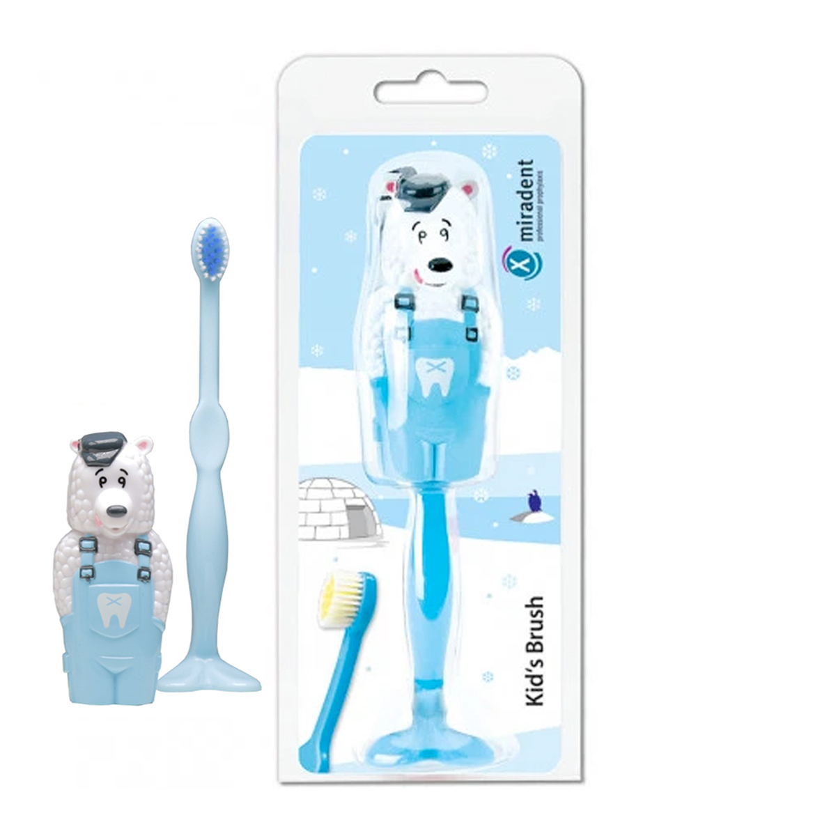 <b>Spazzolino per bambini con capuccio protettivo a forma di animali</b> Testa piccola con campo di setole ovale, il busto è costituito da un cappuccio apribile, l'apertura del cappuccio protettivo consente la circolazione ottimale dell'aria, il manico ergonomico funge anche da supporto. Per bambini a partire dai quattro anni. Orso polare cod. 630-048 Larident Confezione: 1 pezzo
