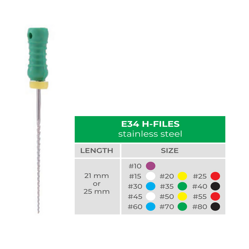 H-Files - Hedstroem in acciaio inossidabile • Codice colore ISO • Flessibile e durevole • Puņ essere sterilizzato fino a 134 ° prima dell'uso Confezione: 6 pezzi sostituisce 7002260